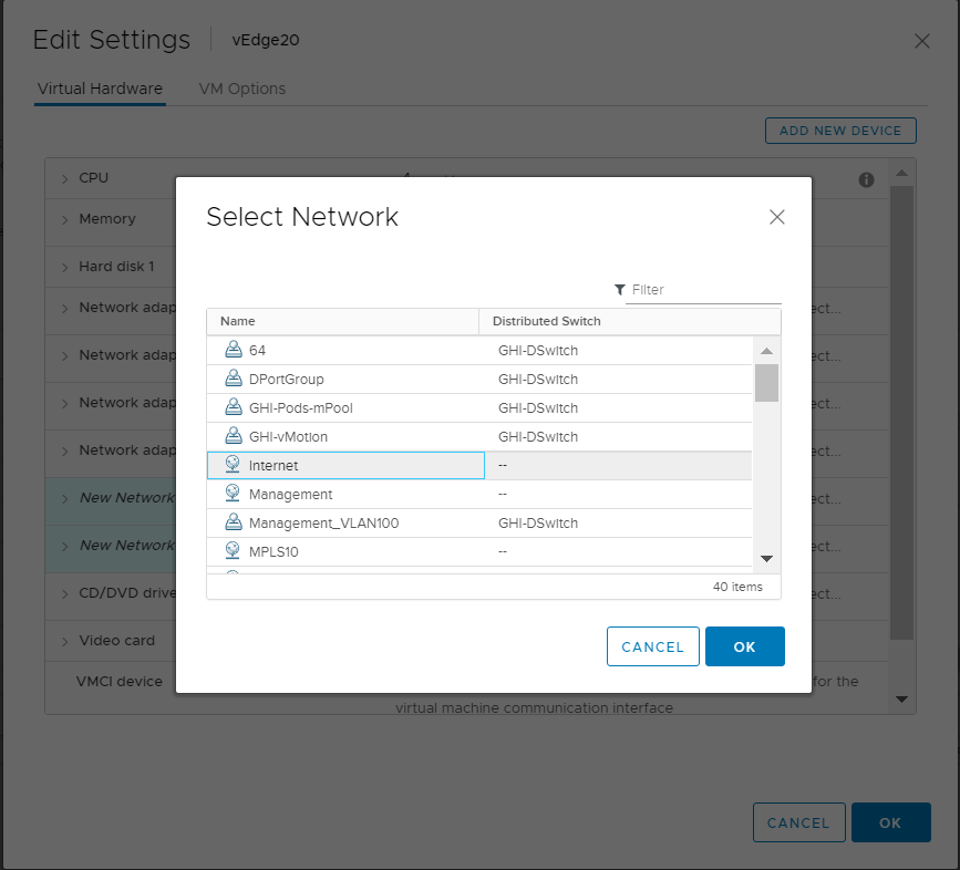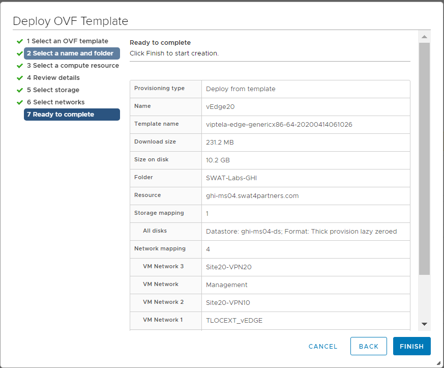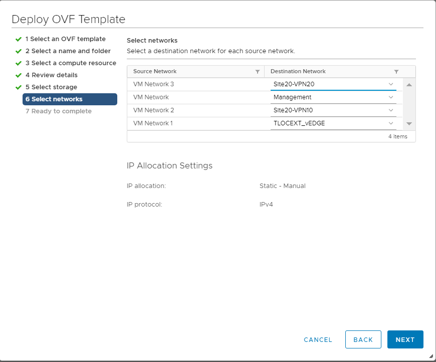 We will be deploying a vEdge at Site 20 via vCenter. Make note of the following information for this section. The IP Addressing will not be used for some of the Network Adapters until later.