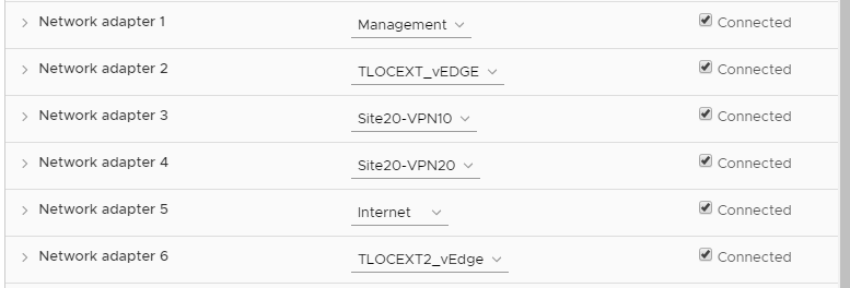 Network Adapter 6 | TLOCEXT2_vEdge | ge0/4 | 192.168.26.20/24 |